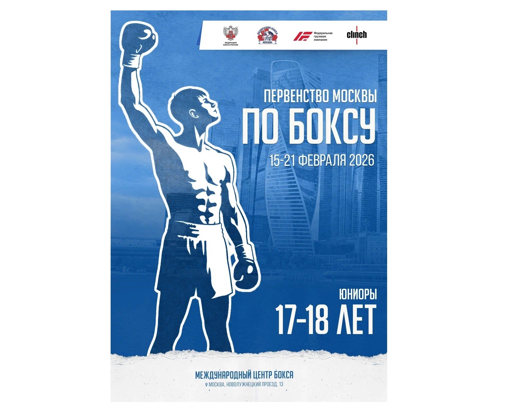 В «Международном центре бокса» с 15 по 21 февраля 2026 года пройдет Первенство города Москвы по боксу среди юниоров 17-18 лет.