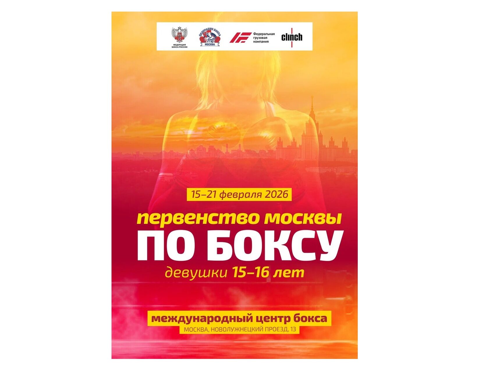 С 15 по 21 февраля 2026 года в «Международном центре бокса» пройдет Первенство города Москвы по боксу среди девушек 15-16 лет.